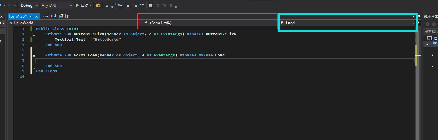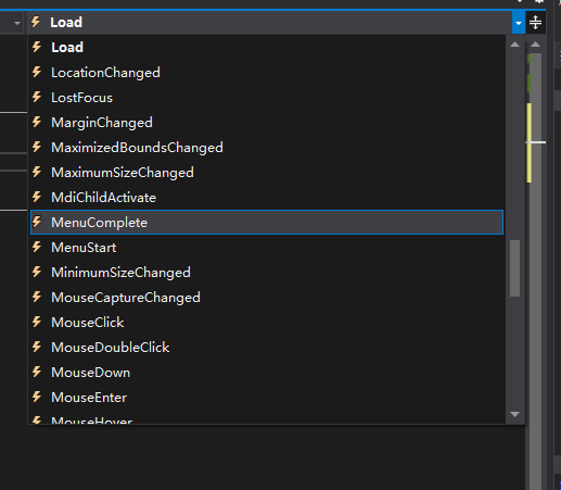而蓝框的地方变成了Load。刚才给按钮写代码的时候是Click,Click代表点击时触发,而Load代表窗口一加载就立即触发。